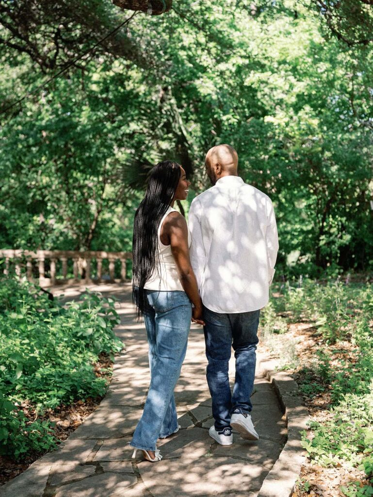 Heritage and culture are a big part of who we are and the story that led us here. Incorporating nods of culture in your engagement session can be a beautiful way to honor your roots, together. And this doesn’t mean you have to change the whole format of the session — it can start with what you wear. Etinosa and Richard chose to proudly showcase their Nigerian American heritage through traditional attire: a gold and black kaftan for her and a sleek black senator suit for him. Later, they slipped into chic white tops and denim. Whether you go bold or subtle, styling can be a powerful way to honor where you came from and who you are as a couple.